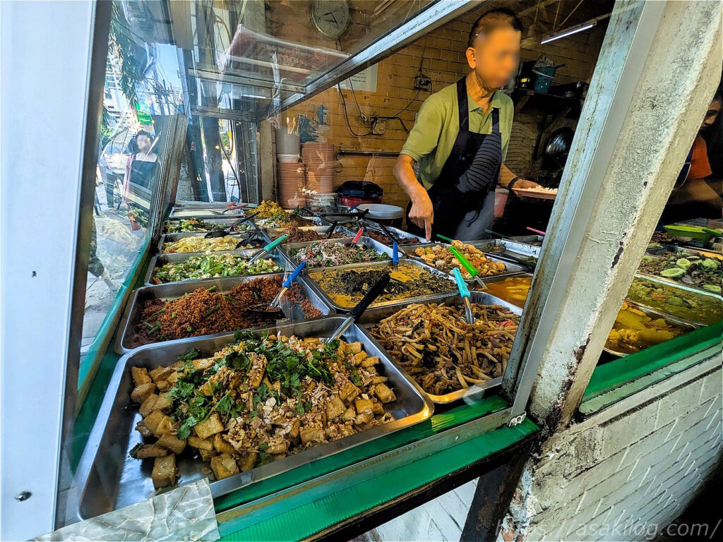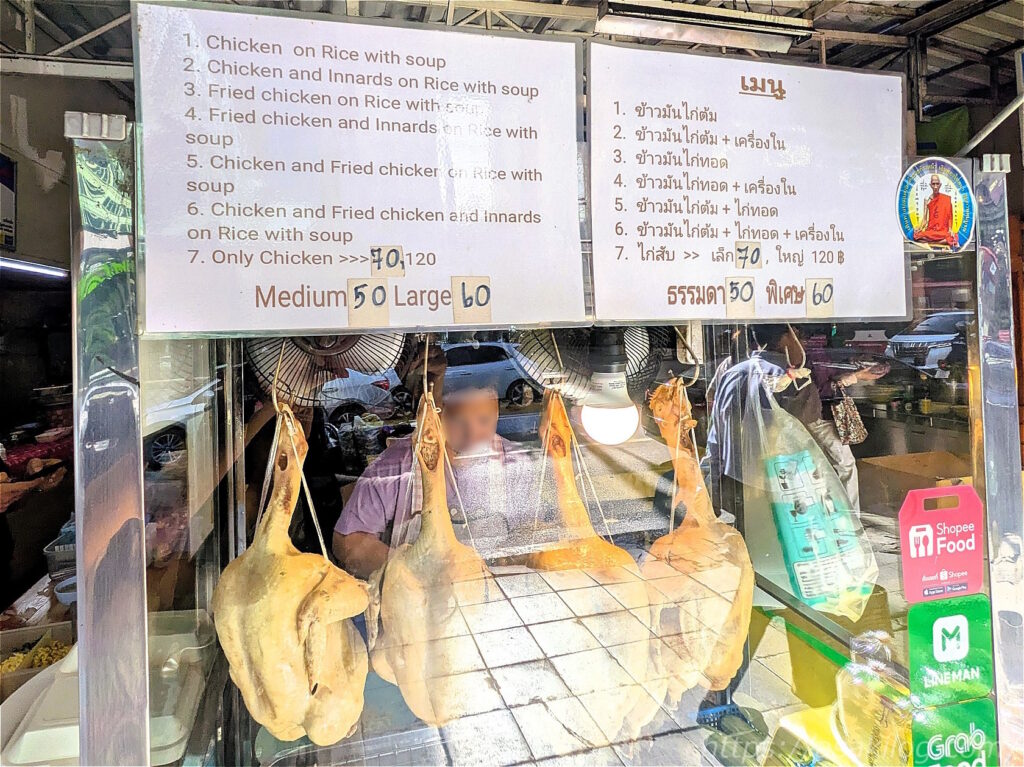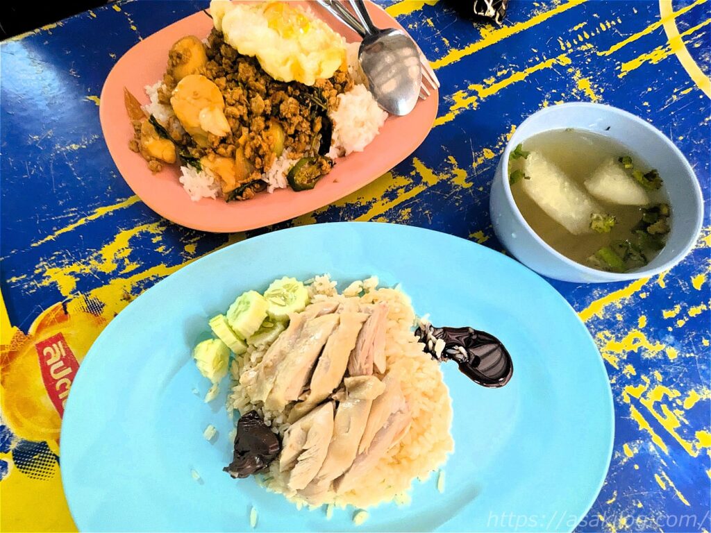 タイならではのローカルフード(おかず)に、ぶら下がったチキン。そうそう、こういうお店のご飯が食べたかった!