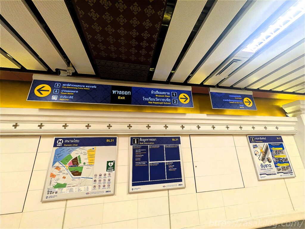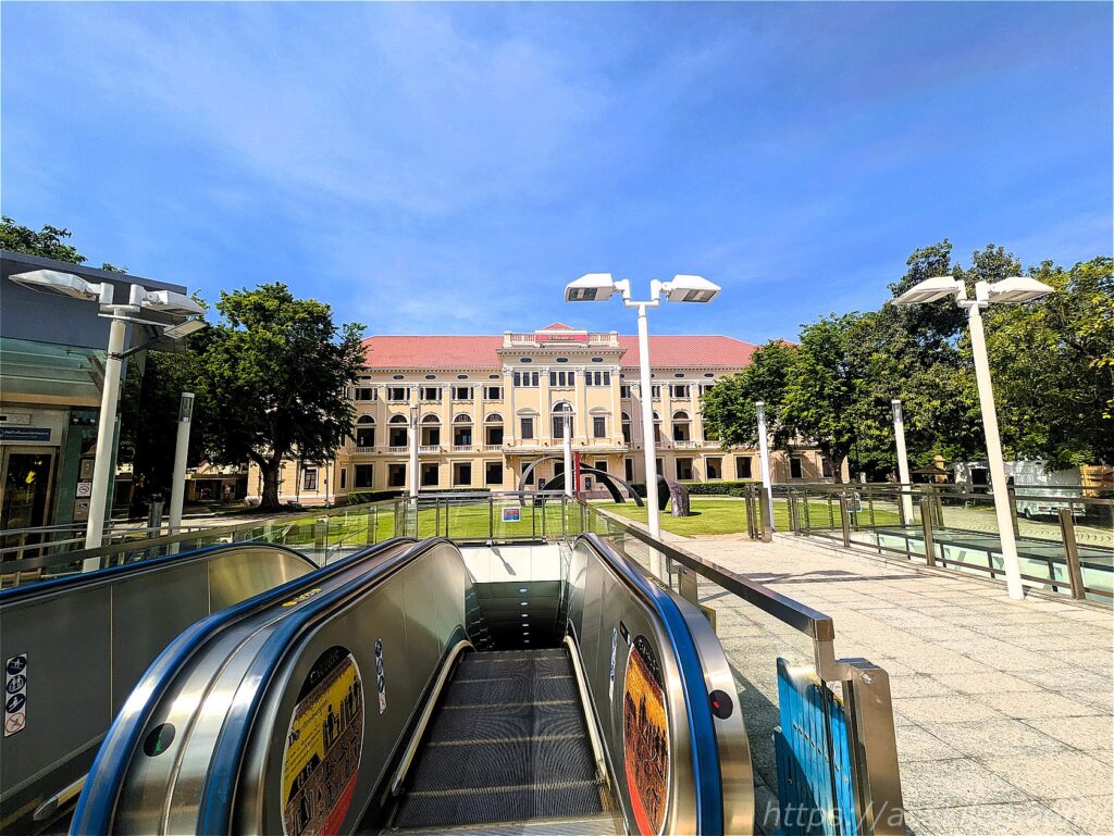 バンコク三大寺院があるエリアへ向かうため、まずはMRTブルーラインでスクンビット駅からサナムチャイ駅まで移動。サナムチャイ駅を出たら、すぐ目の前に博物館が見えました。