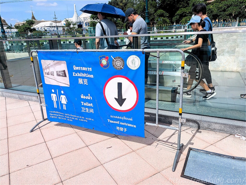 サムチャイ駅から、写真の下りエスカレーターまで徒歩20分。この後、午前中だからか?かなりの大混雑で、地下の広場で長時間並びました。