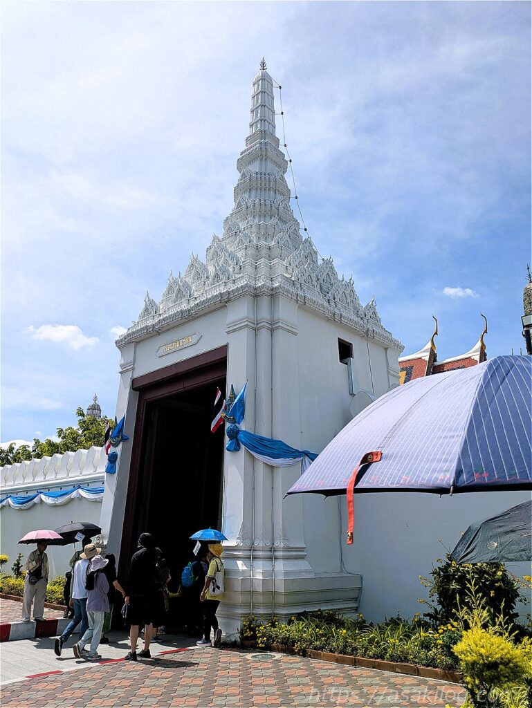 また高さ3mほどのタイル張りの小仏塔はタイ風の墓標で遺骨が納められています。以前は王族専用だったものの、現在は寄付すれば一般人でも納骨可能なんだそう。