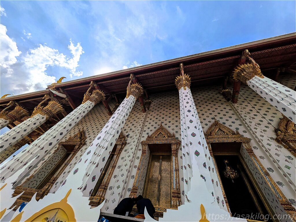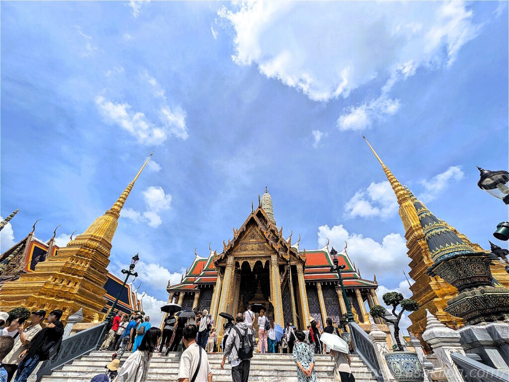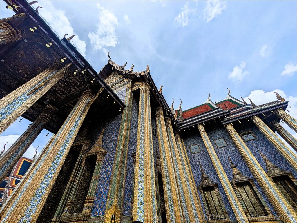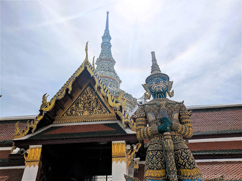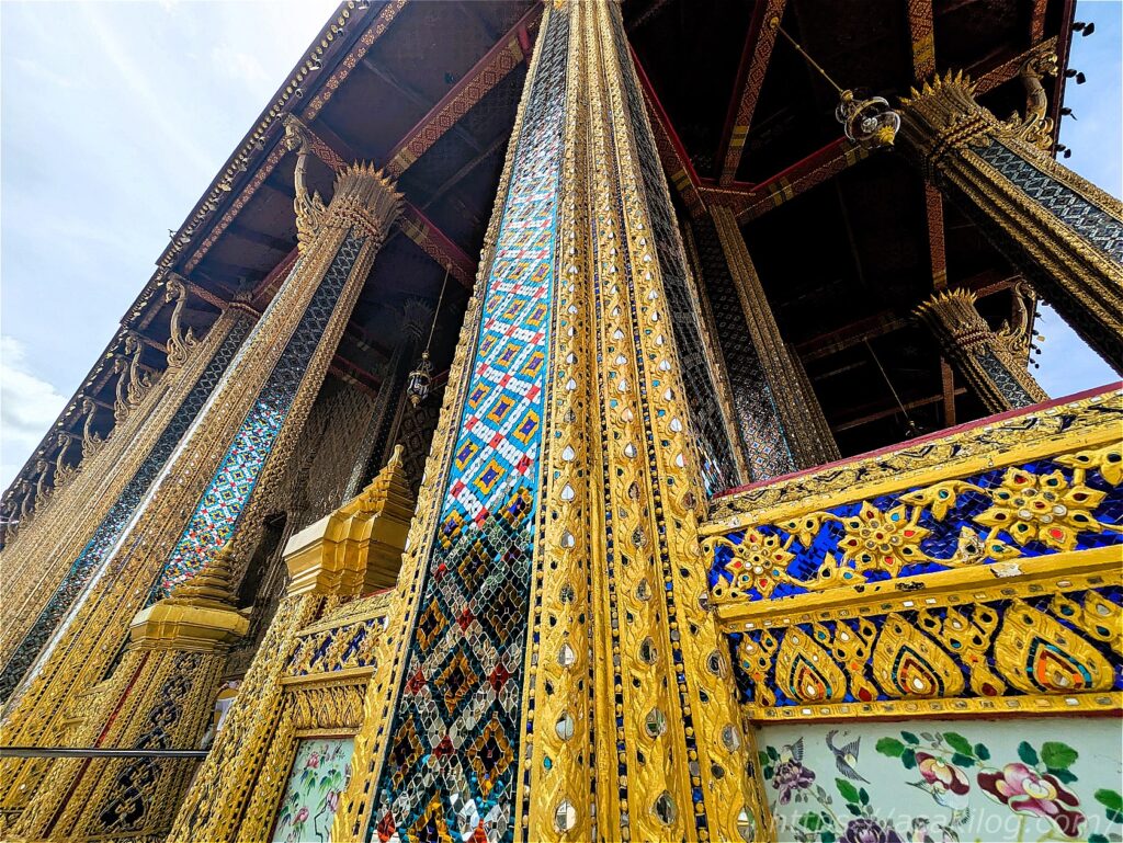 こちらのキラッキラの派手な外観の建物は、ワット・プラケオの本堂。中には高さ66m・幅48.3mのヒスイ製の仏像(国の守護仏たるエメラルドブッダ)が安置されていたそうですが、今回見逃してしまいました。