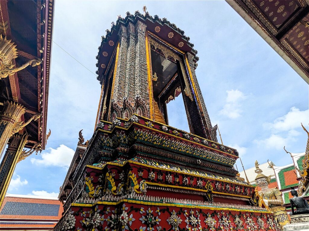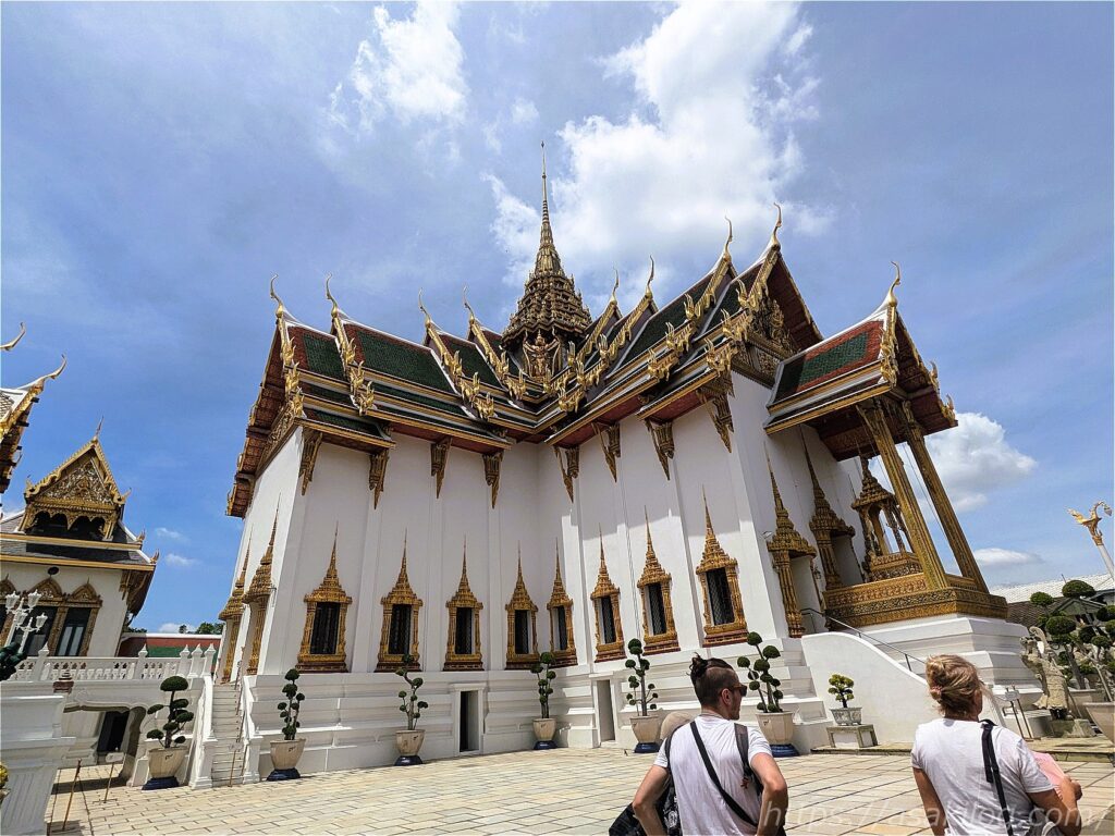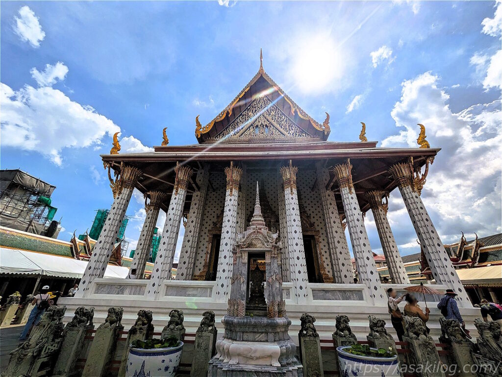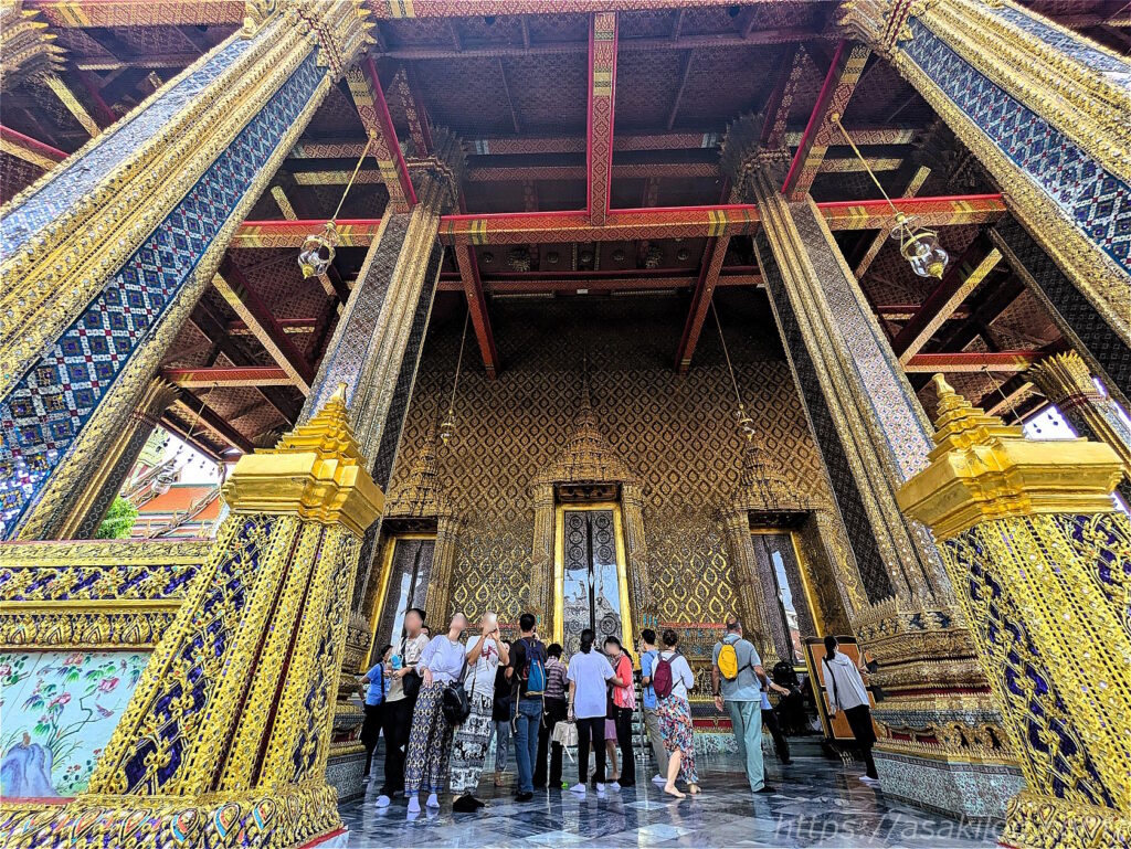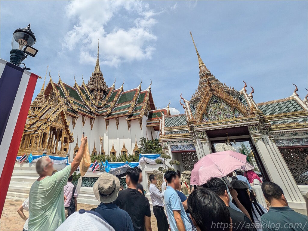 こちらのキラッキラの派手な外観の建物は、ワット・プラケオの本堂。中には高さ66m・幅48.3mのヒスイ製の仏像(国の守護仏たるエメラルドブッダ)が安置されていたそうですが、今回見逃してしまいました。