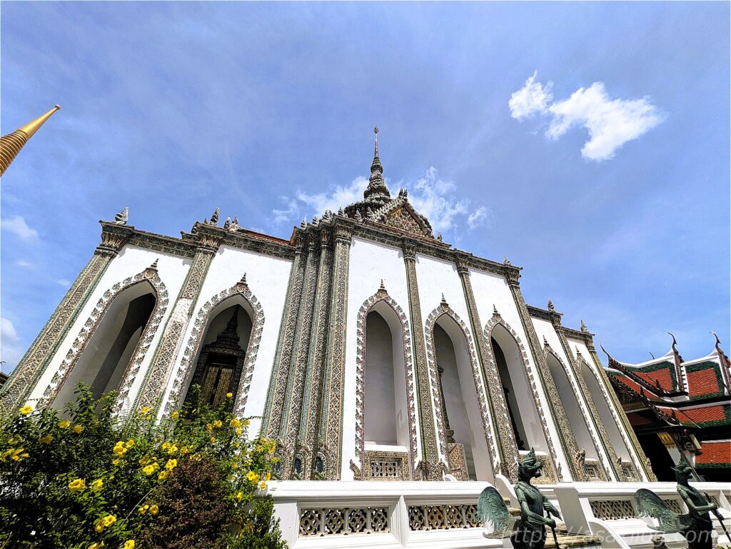 ワット・プラケオは、1782年にラーマ1世がトンブリーからバンコクに遷都すると同時に、王朝の守護寺・護身寺として建設開始。1784年に完成したタイで最も格式の高い王室寺院で、王宮の中に位置しています。