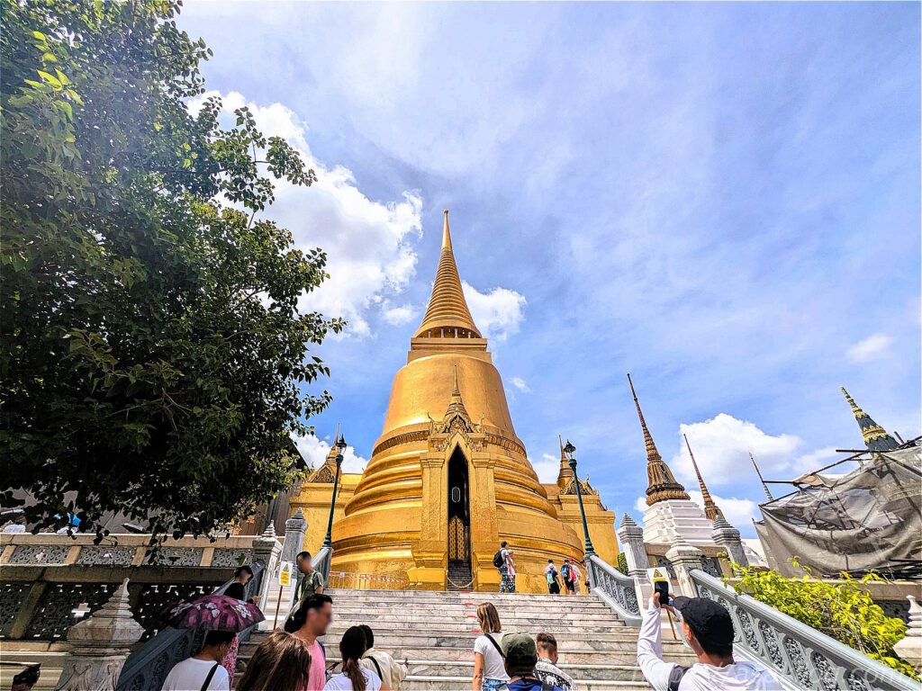 こちらの黄金に輝く仏塔は「プラ・シー・ラタナー・チェディー」。1855年にラーマ4世がアユタヤにあるワット・シー・サンペットの仏塔を模して建てたもので、内部には仏舎利(仏陀の遺骨)が納められているそう。