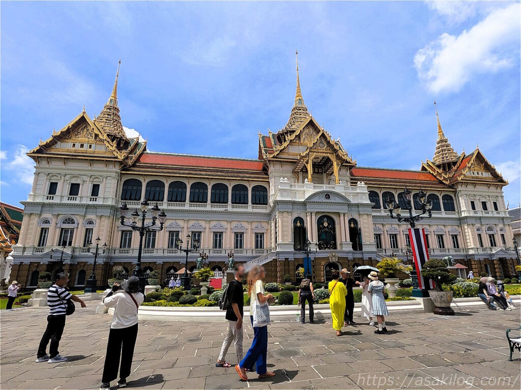 ワット・プラケオ散策後のルートには、こちらの「チャクリー・マハー・プラサート宮殿」がありました。東洋と西洋の美意識が見事に融合した建物で、その名のとおりラーマ8世までは国王の住まいだったそう。現在は儀式および式典の場・迎賓館として利用されています。