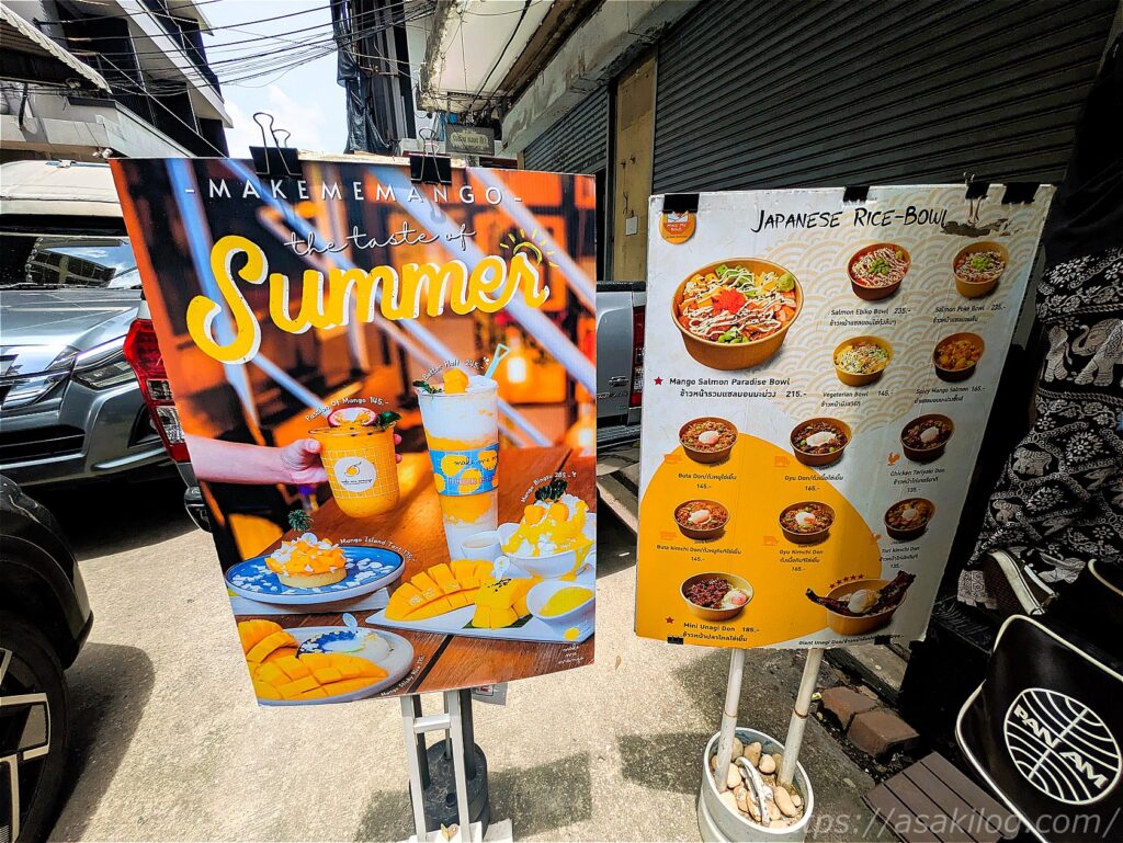 ワット・プラケオの後は、そのまますぐにワット・ポーを散策しよう!と思っていたのですが、あまりにも疲れ果てていたため、「先にランチを食べて休憩しよう、せっかくなら甘いものが食べたい」となり、近くの「Make Me Mango Tha Tian」というお店に行ってみました。