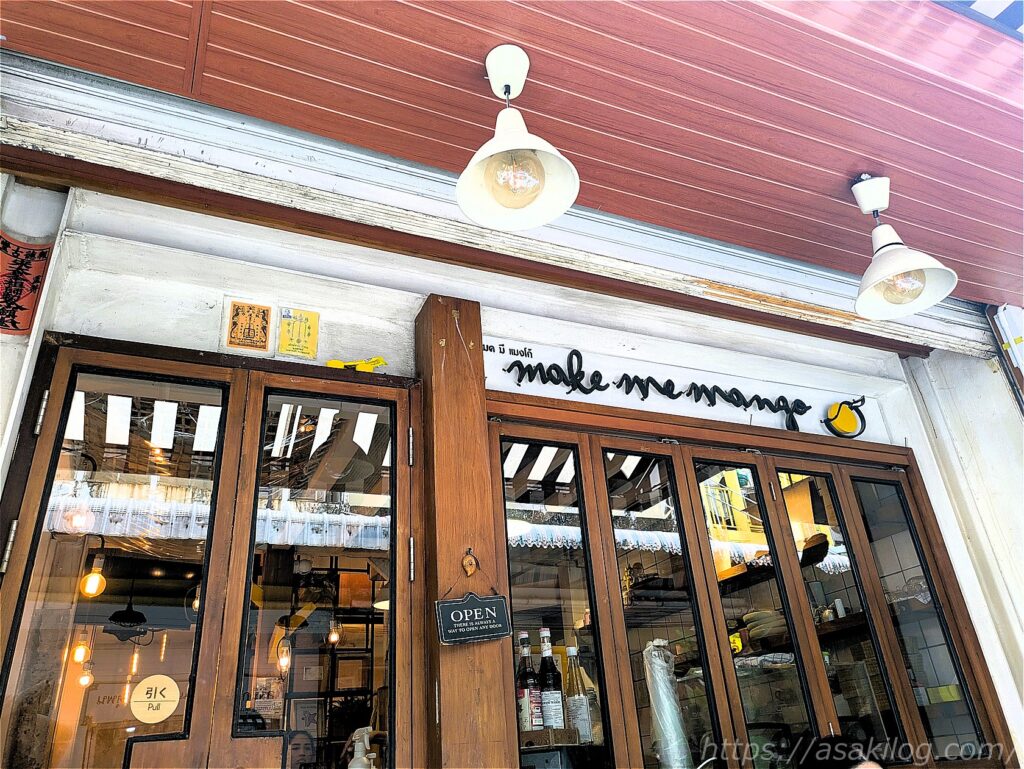 こちらがMake Me Mango Tha Tianの店舗外観。ワット・ポーのそばに、2016年にオープンしたお店なんだそう。おしゃれで可愛い。
