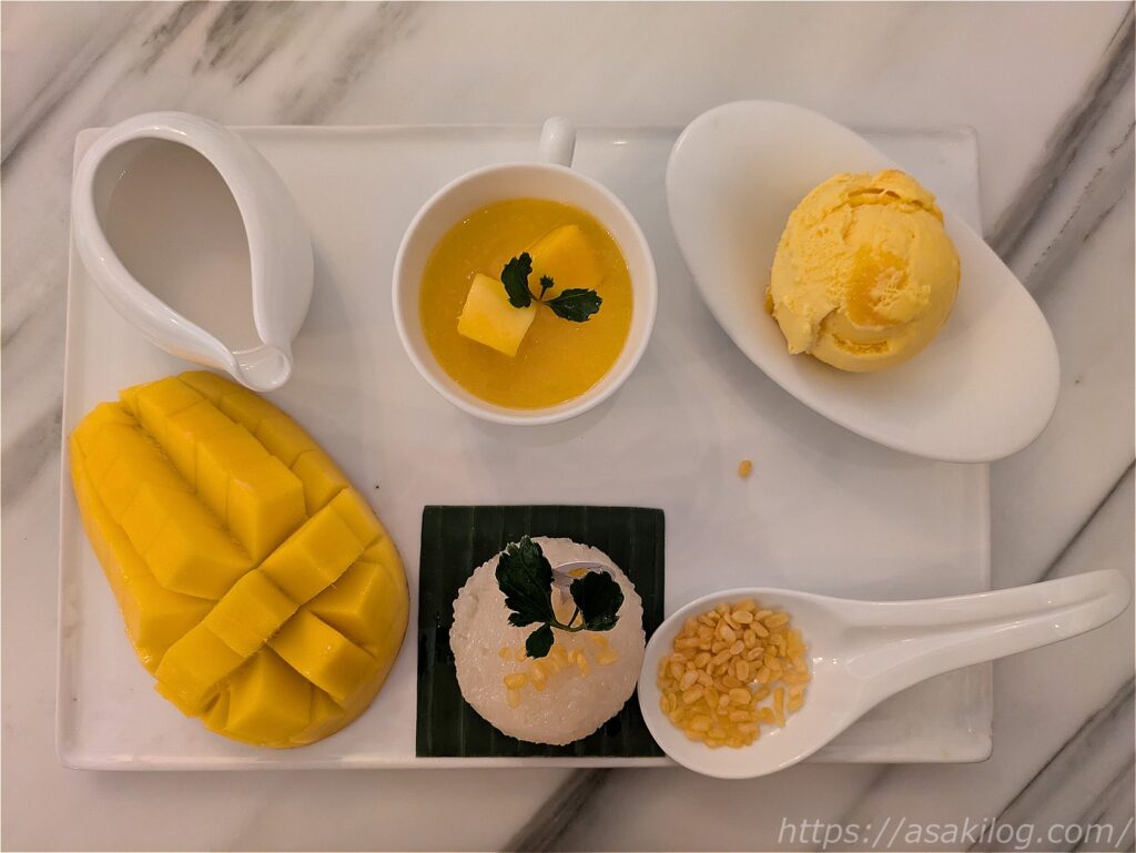 「Make Me Mango」は、フレッシュマンゴー・マンゴーアイス・マンゴープリン・カオニャオマムアン(もち米とマンゴーをココナッツミルクソースで味付けしたデザート?)など、まさにマンゴー尽くし! 冷たい「Mango Smoothie PURE」もマンゴーが濃厚で甘くて美味しくて、一気に生き返りました!