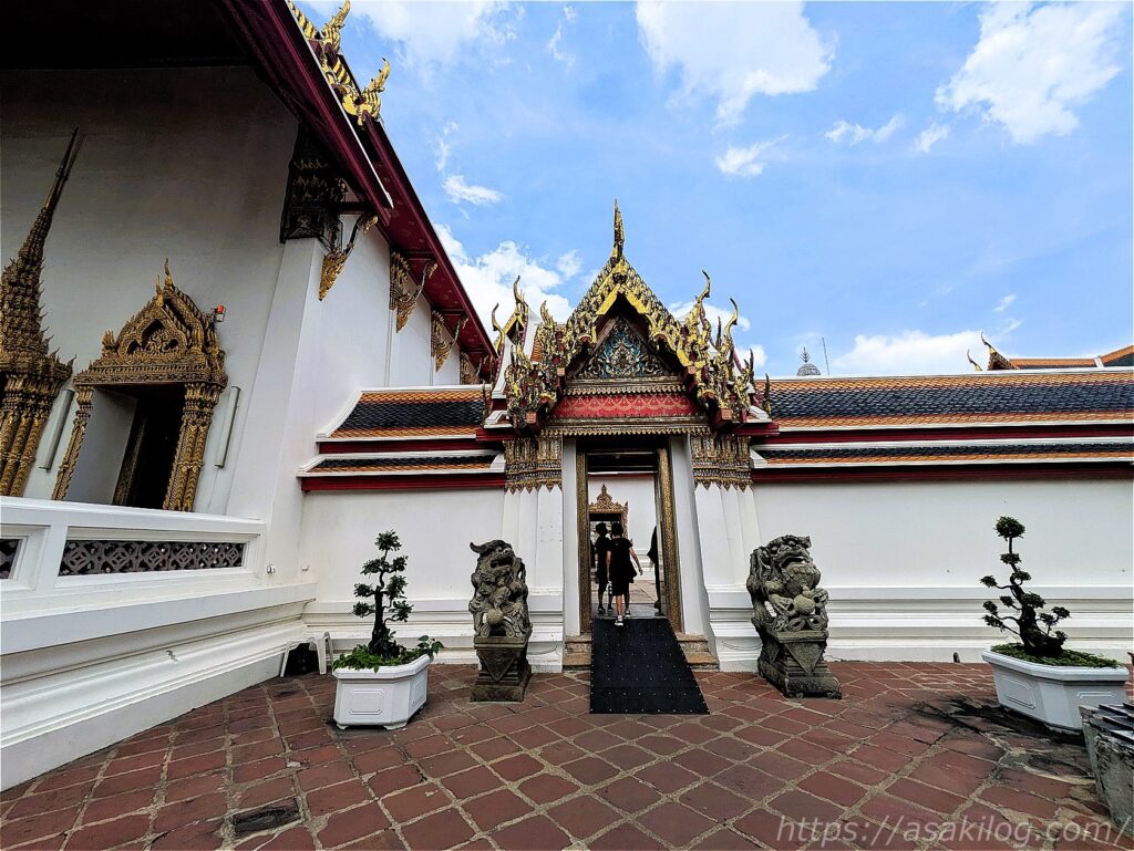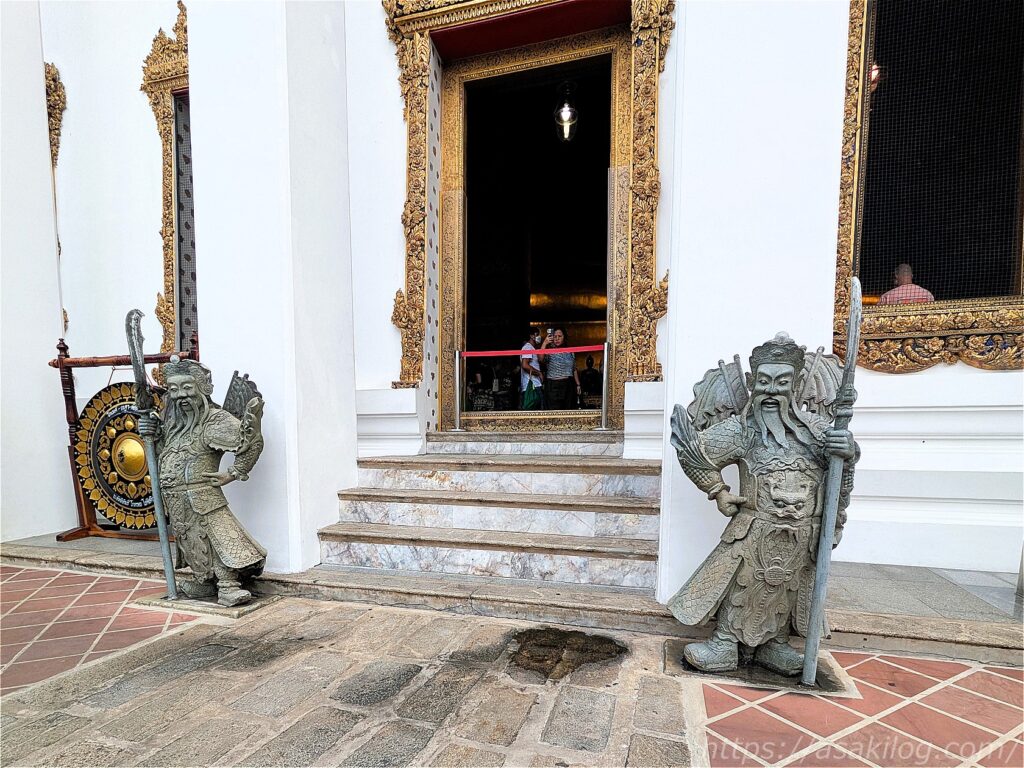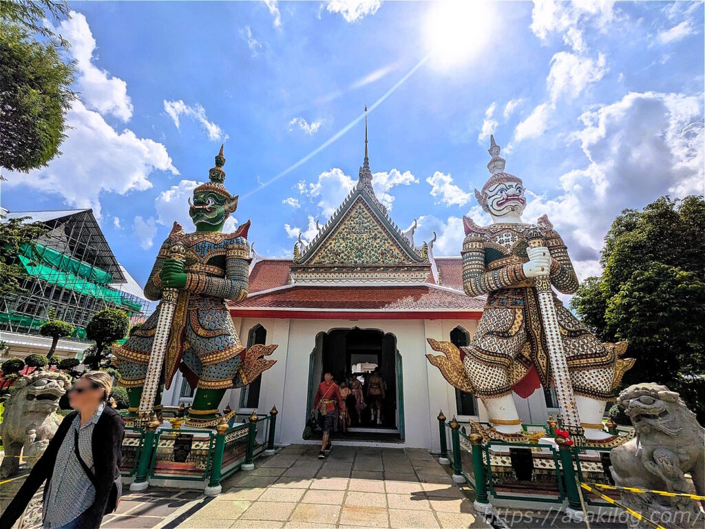 チャオプラヤー川側から入場すると、高さ6mの2体の門番・ヤック(鬼神)とモック(猿神)が立つ山門があり、ここが本堂への入口になっています。