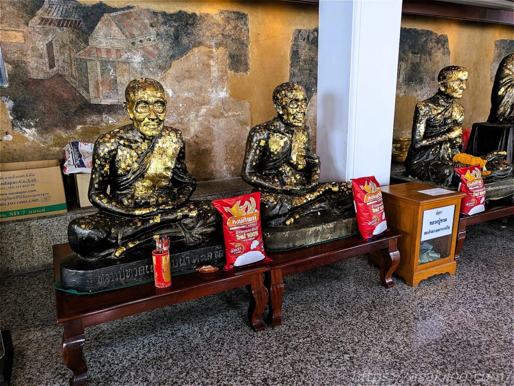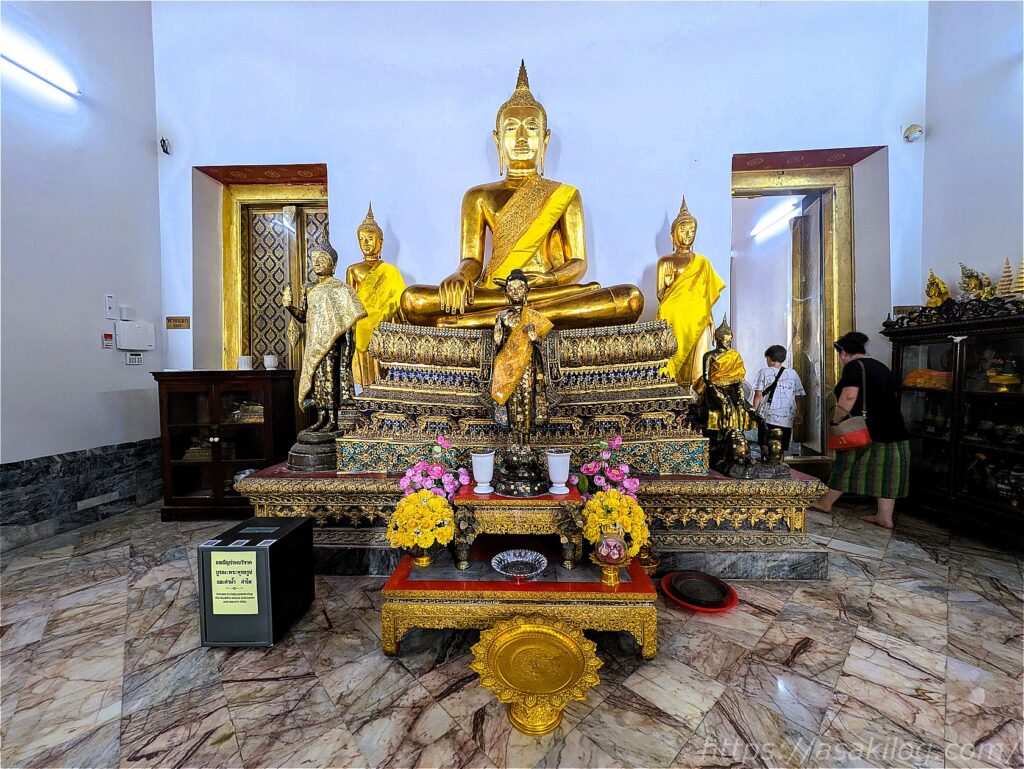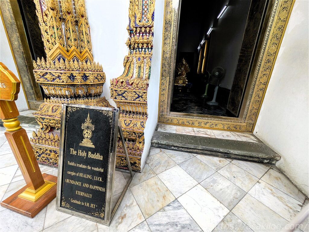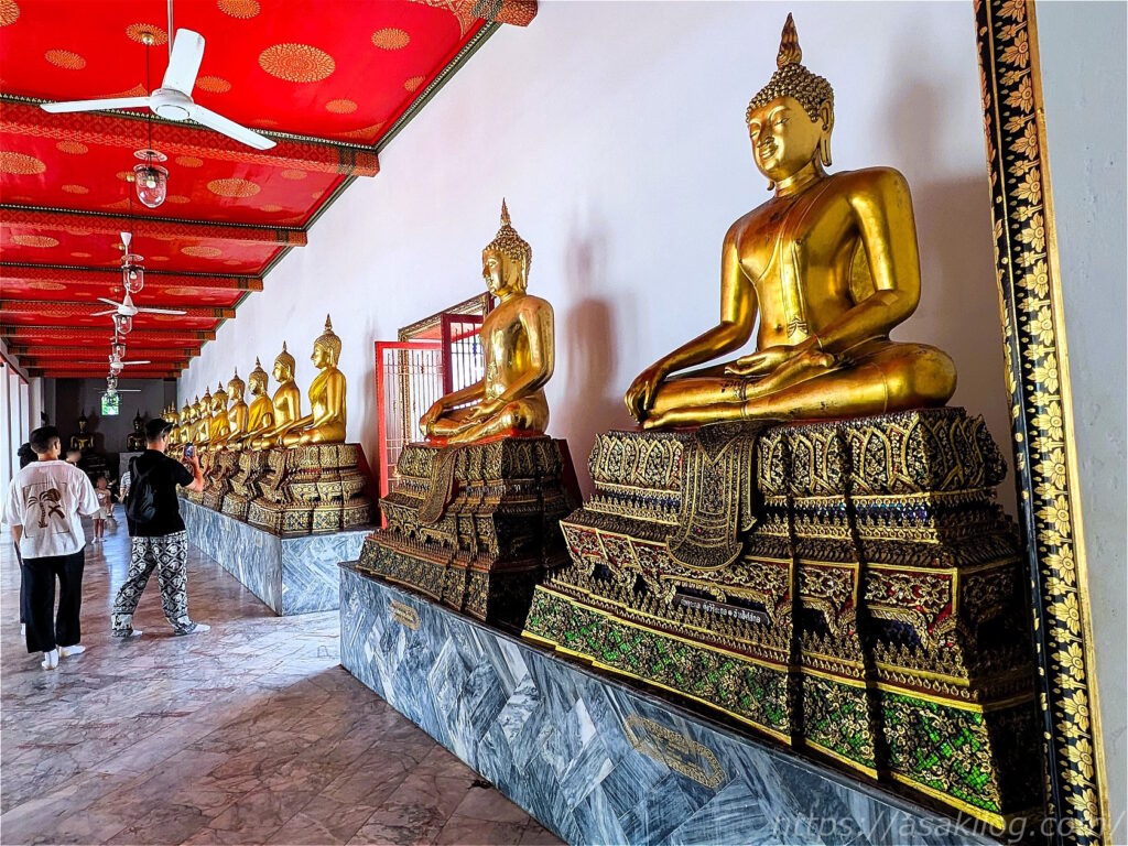 ネットの情報によると、ラーマ1世によって建立された本堂は外回廊と内回廊によって二重に取り囲まれていて、中には仏像がたくさん並んでいるようなので、多分ここのことかなぁ?と。