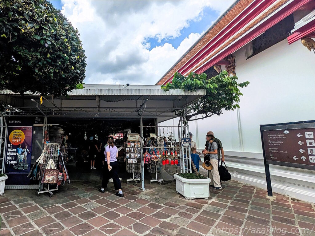 ワット・ポーには、このようなスポットも。1枚目の写真が「世界の指導者とワットポー」の図、2枚目の写真が誰でも叩けるドラ、3枚目の写真が売店です。売店にはお土産物のほか、ペットボトルもたくさん売ってましたよ(水を買いました)