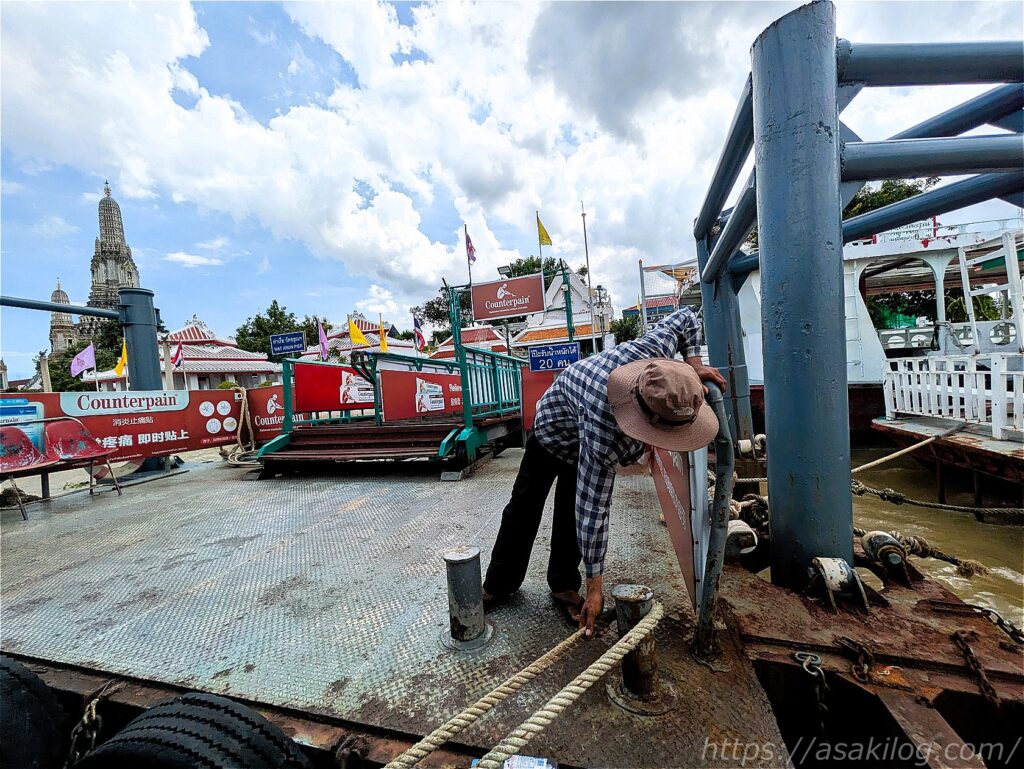 ターティアン(Tha Tien)からワット・アルン(Wat Arun)までのボートは、1人5THB×3人=15THB(=約63円)と格安。待ち時間5分ほどでした。
