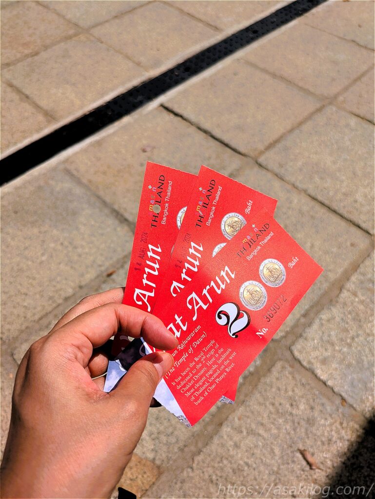入口でチケット購入。入場料は1人200THB×3人=600THB(=約2,520円)で、ペットボトルのお水もついてきました。