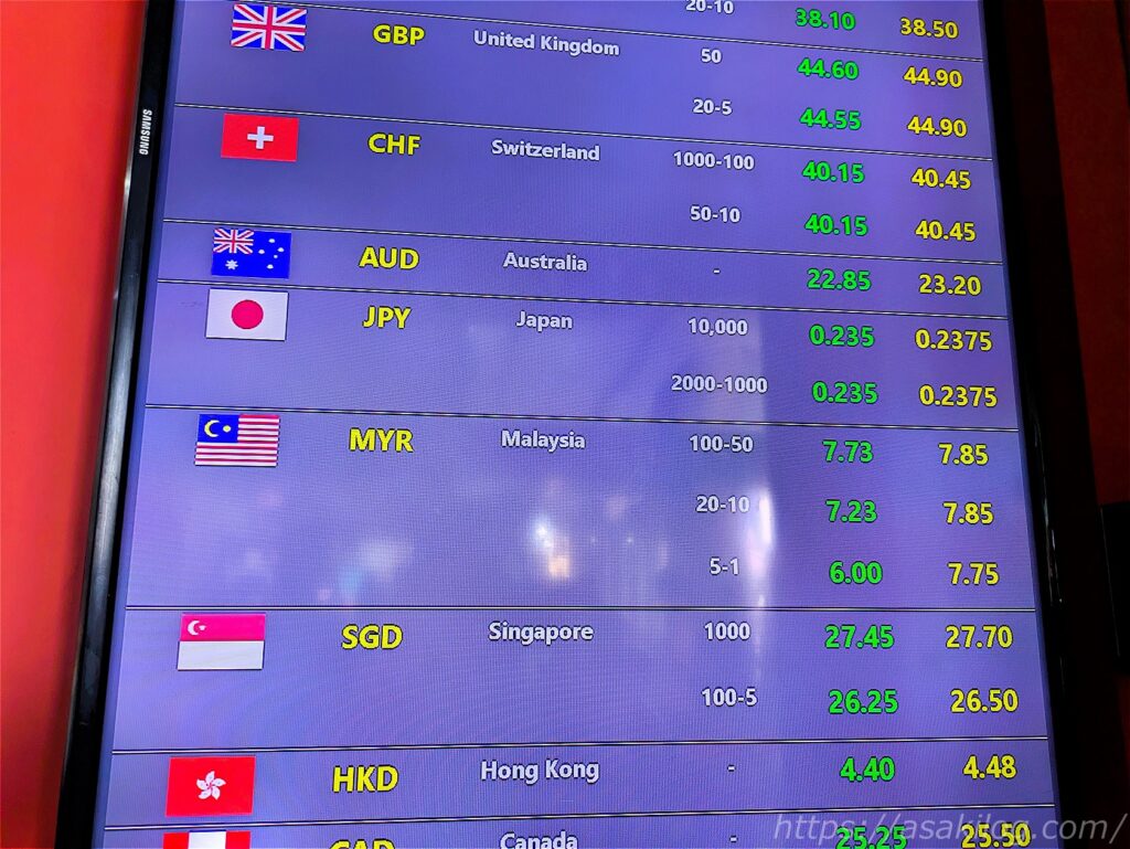 スクンビット駅に着いたら、すぐ近くのアソーク駅周辺にある「スーパーリッチ・BTSアソーク」でタイバーツに両替しました。