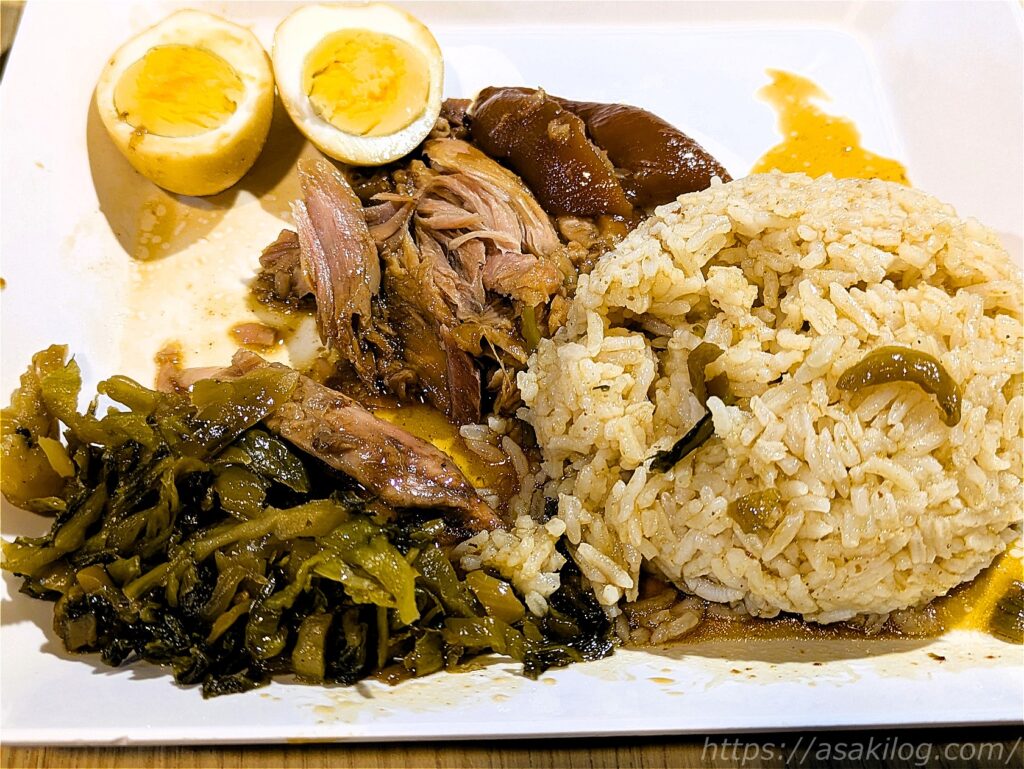 私はグリーンカレー+ガパオで50THB、夫は鶏ガパオ+麩ガパオ+目玉焼きで60THB、娘はカオマンガイ+スープ付きで50THB。家族3人で160THB(=約672円)とローカルフードならではの安さ!そして問題なく美味しかった~!