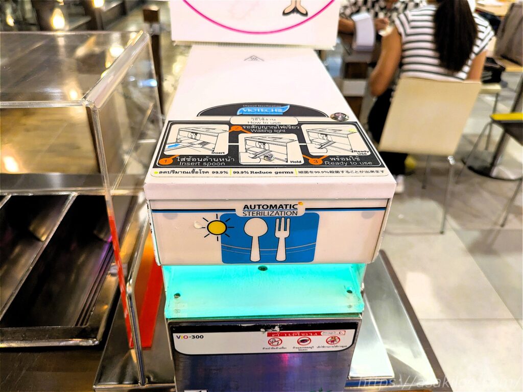 ちなみにピア21では、スプーンフォークなどを使う前に、こちらの機械で自分で消毒して使います。こんなシステム初めて見たので新鮮でした。