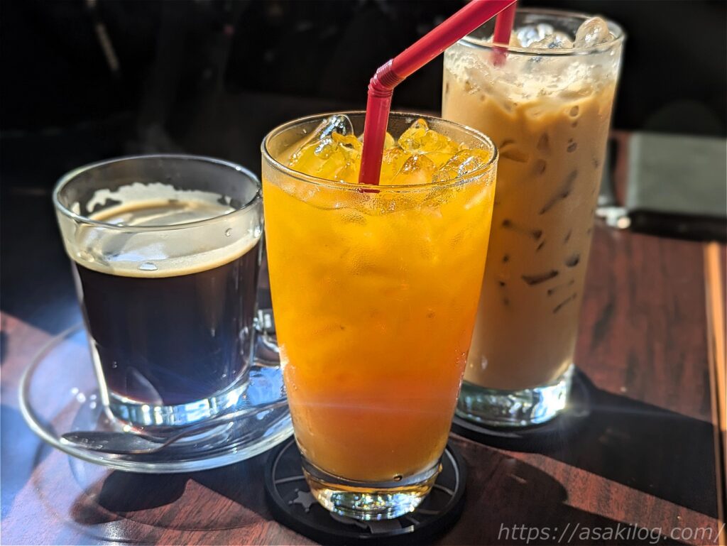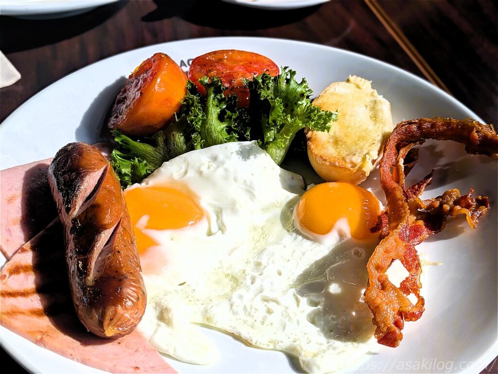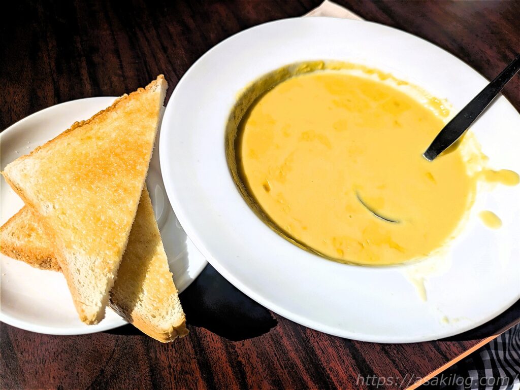 夫君は朝食プレートとアイスコーヒー、娘はマッシュルームスープ・パンとオレンジジュースをオーダーして、家族3人で789THB(=約3,313円)でした。やはりタイのローカルごはんと比べるとお高めですね。