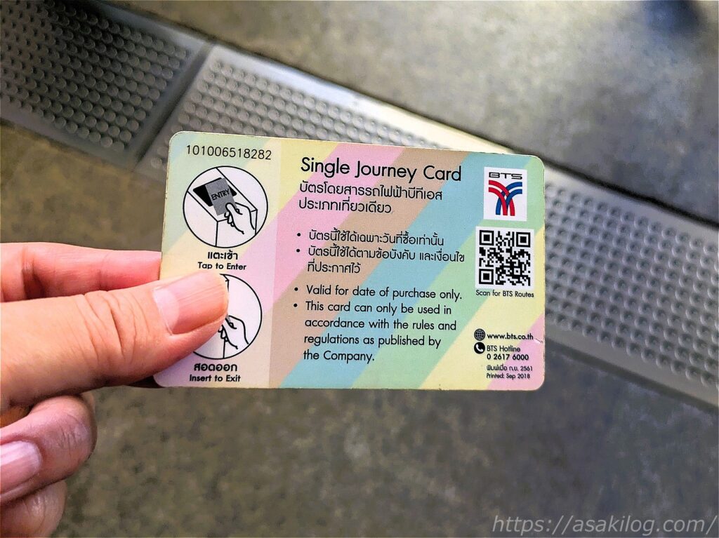 これまでバンコクのMRTは利用しましたが、BTSは初めて。ICチップ入りのカード式チケットでした。
