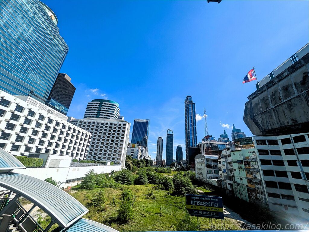 チットロム駅周辺に到着。私が滞在していたスクンビット・アソークエリアとはまた違った都会の雰囲気です。巨大ショッピングセンター「セントラルワールド」もありますが、時間が無いので今回は立ち寄れず。