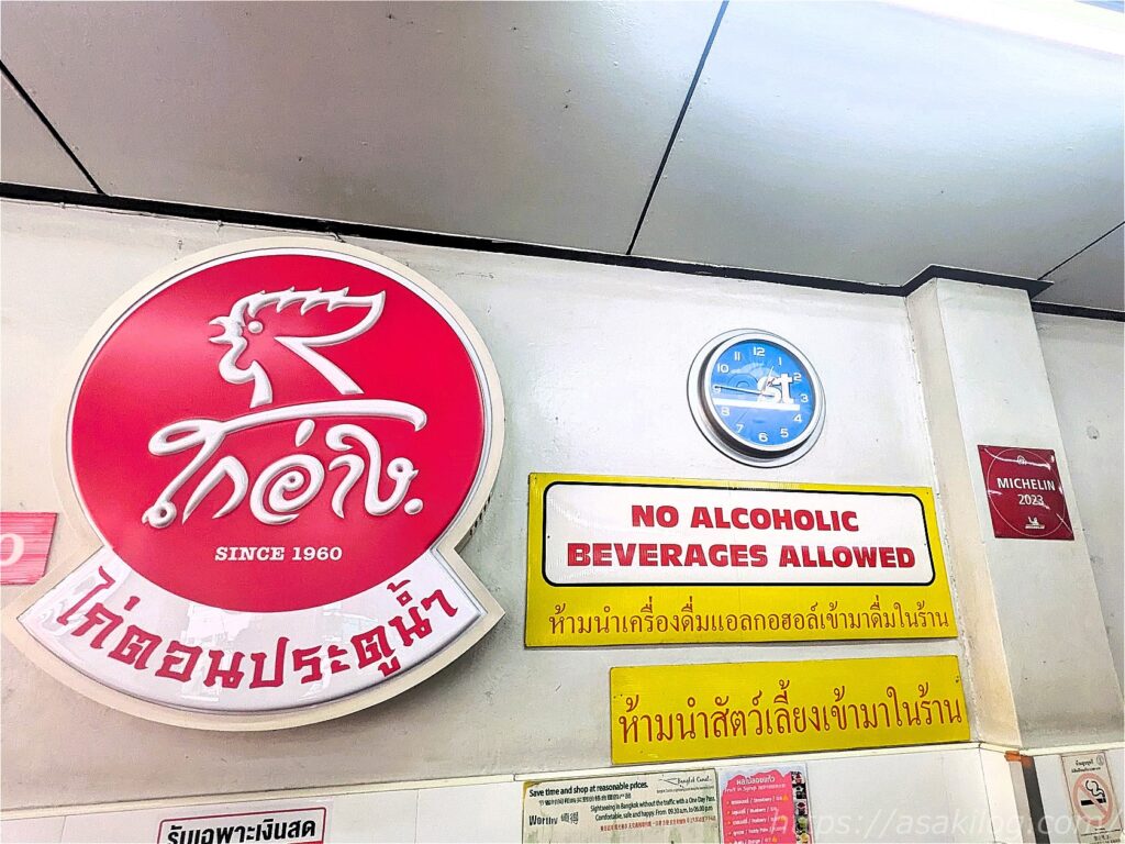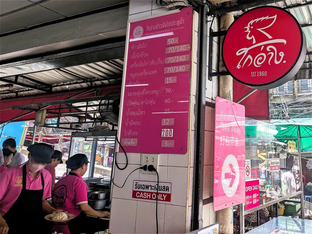 ゴーアン カオマンガイ プラトゥーナムは、店員さんのユニフォームから「ピンクのカオマンガイ」としても知られているそう。2枚目の写真、ミシュラン掲載のシンボルマークも貼ってありました。