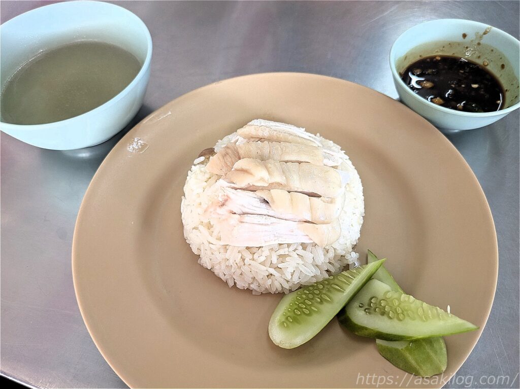 こちらが、ゴーアン カオマンガイ プラトゥーナムのカオマンガイ。1皿50THB(=約210円)とリーズナブル。そしてさすがミシュラン掲載!シンプルでありながら、間違いのない美味しさ。