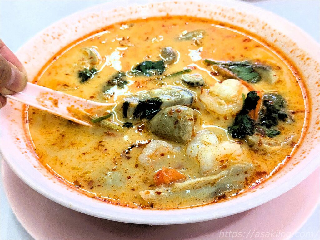 スープの量がたっぷり!スプーンですくうと具沢山! 汗だくになりながら食べて、あー美味しいと大満足でした。ホテルのチェックアウト直前にシャワー浴びたの無駄やったなぁ(笑)