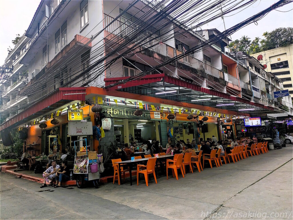 この日の夕食は、タイの大衆食堂「Sudaスダー」というお店で食べることにしました。場所はスクンビット駅近くにあり、スーツケースを預けたホテルからも徒歩圏内です。