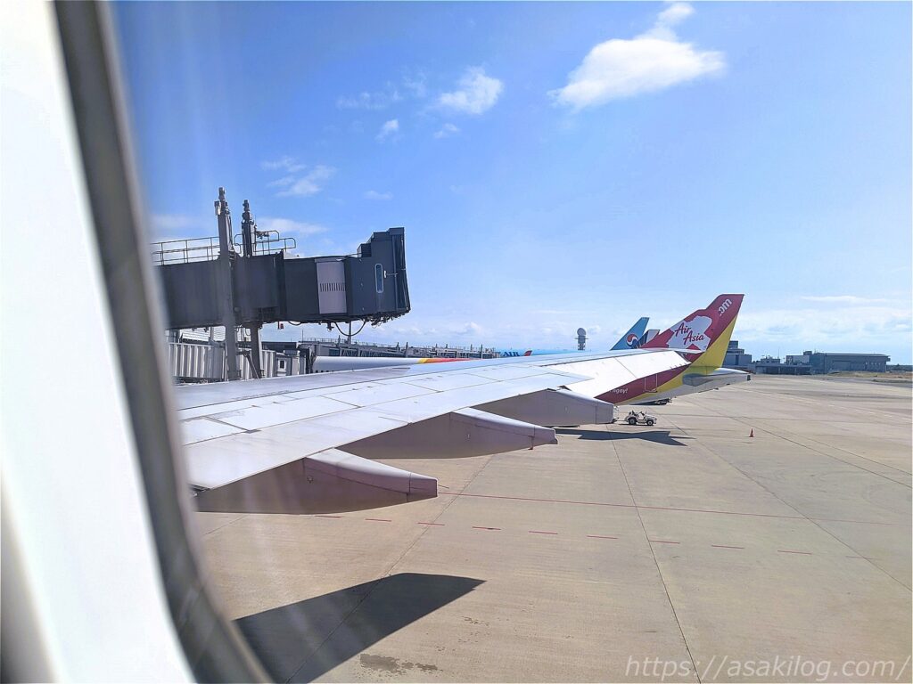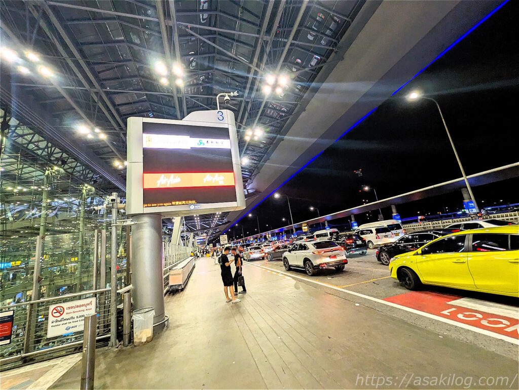ホテルからスワンナープ国際空港までは、約1時間ほどで到着。帰国便の航空会社「AiaAsia」のロゴが表示されている前で、下ろしてもらえました。