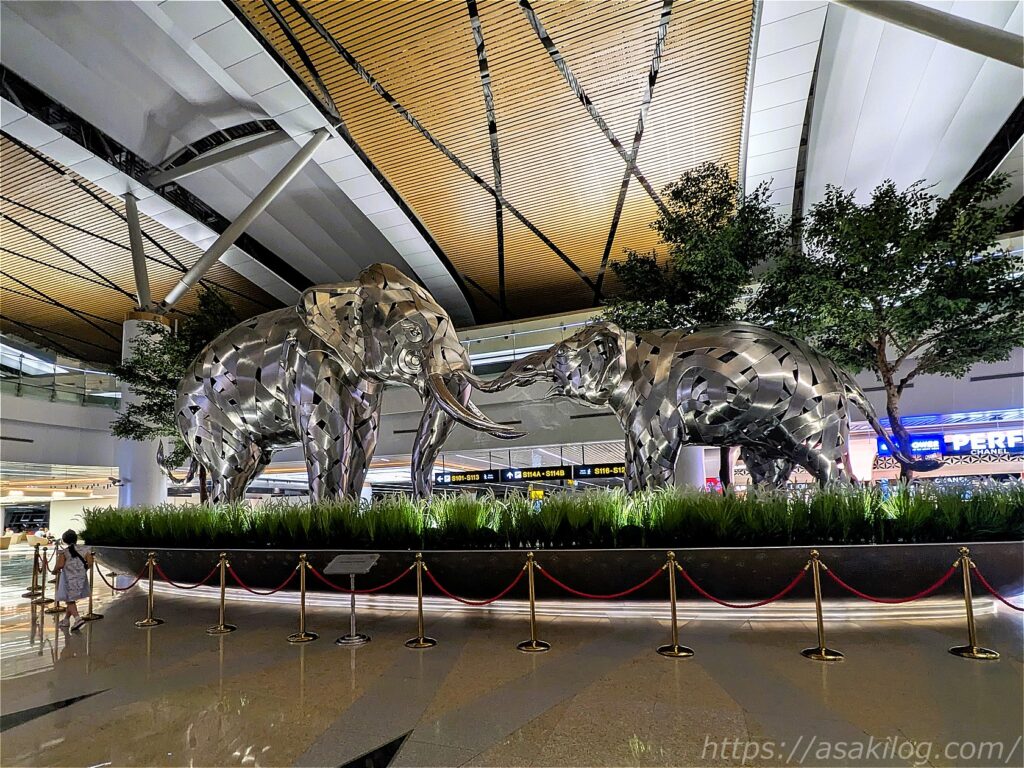 出発ロビーに移動するまでの間、オブジェを見たり撮影したり、給水機のお水を空のペットボトルに入れたり(機内で飲むため)。