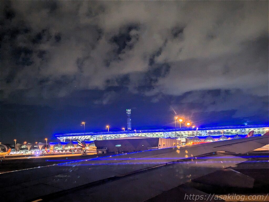 復路は深夜便のため機内食は無し、ひたすら寝るのみです。さよならバンコク、またいつか。