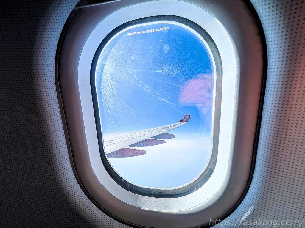 往路では「日本を出発時は暑く、移動途中で少し肌寒くなったため長袖パーカーを着用、タイに着陸前にまた暑く」なったのですが、復路は深夜便だったからか?往路より寒かったです。バンコク離陸前に長袖パーカーを着用、途中でブランケット+レッグウォーマーも使いました。