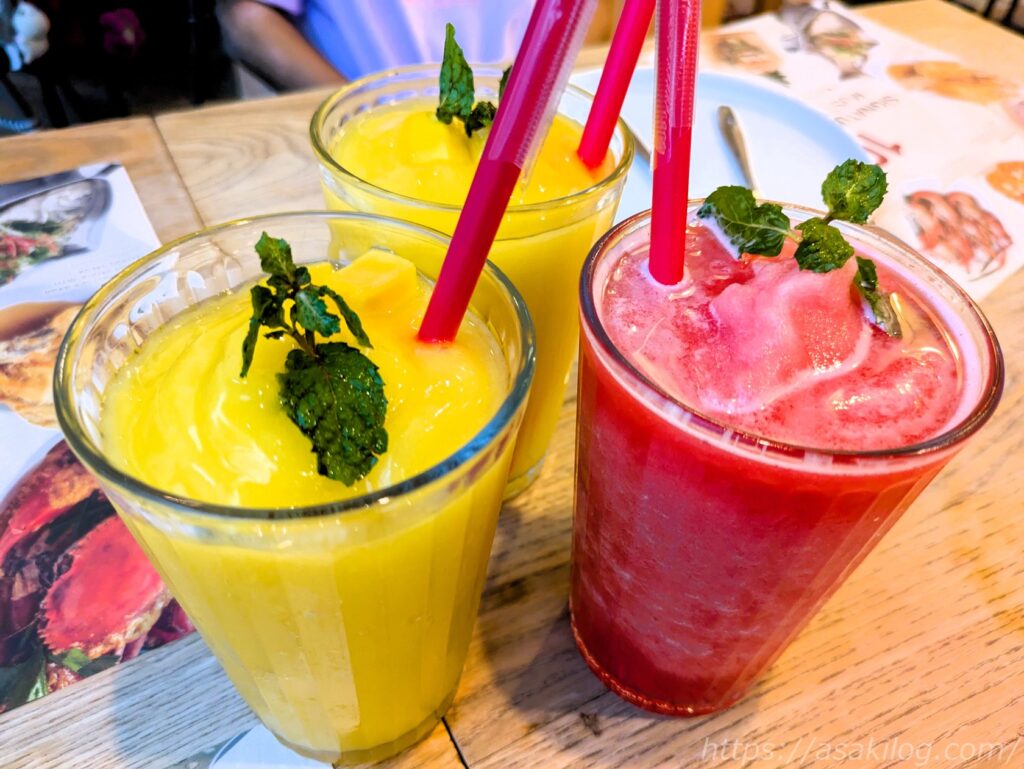 家族3人でオーダーしたのは「Make Me Mango(245THB)」2つと「Mango Smoothie PURE(115THB)」3つ。レシートによると、セットで少し割引になっていたみたいで、合計797THB(=約3,347円、クレジットカード払い)でした。