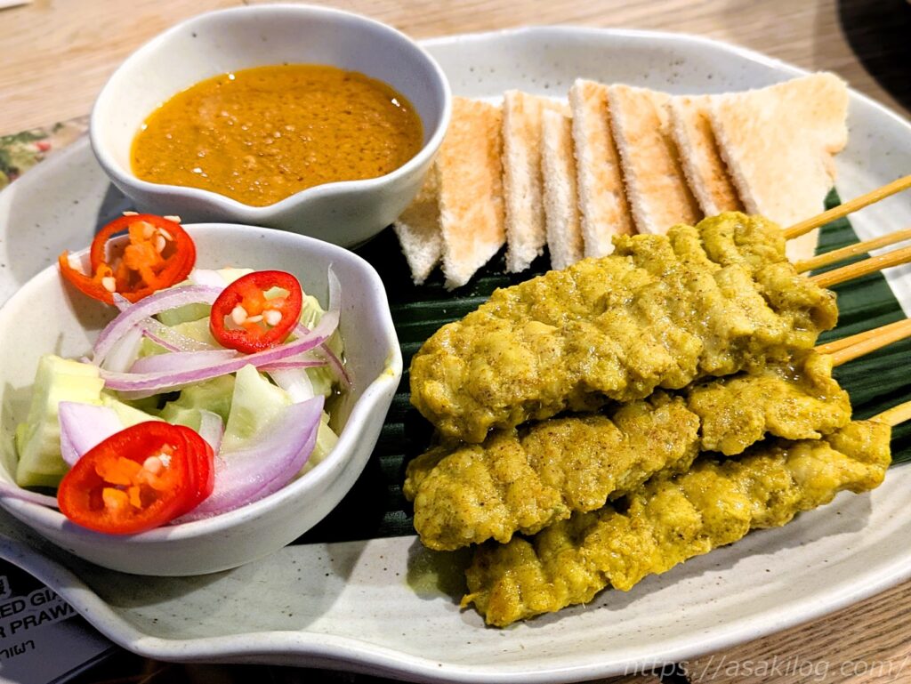 ここではトムヤムクン・ポークサテ・イエローカレー・フレンチフライ・エビフライなどをオーダー。合計870THB(=約3,654円)でした。