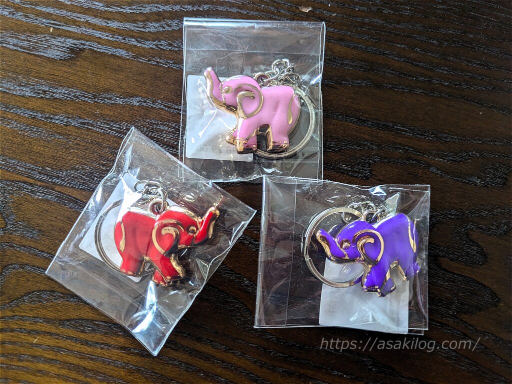 ターミナル21では「ノート+コースター(190THB、写真1枚目)」「象のキーホルダー(夫君の自腹、写真2枚目)」を購入しました。ノートとコースターは私と娘でお揃い!キーホルダーも色違いで使っています。