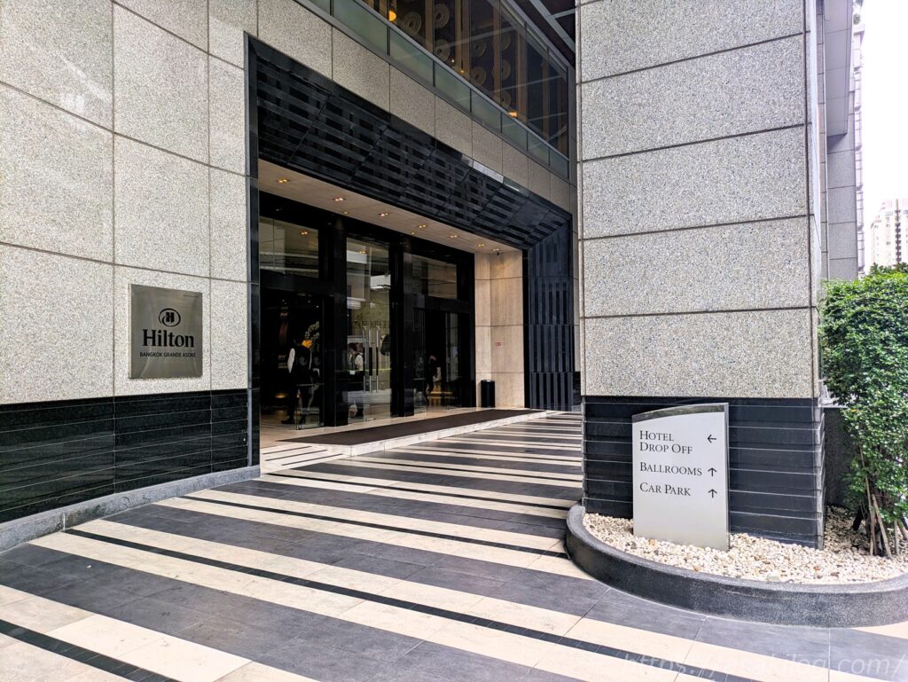 こちらがヒルトン バンコク グランデ アソークの外観。この写真は、ホテル前の道路を渡った反対側から撮影しています。