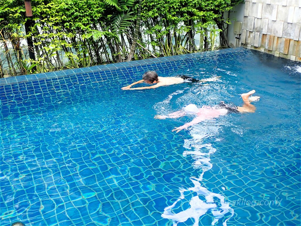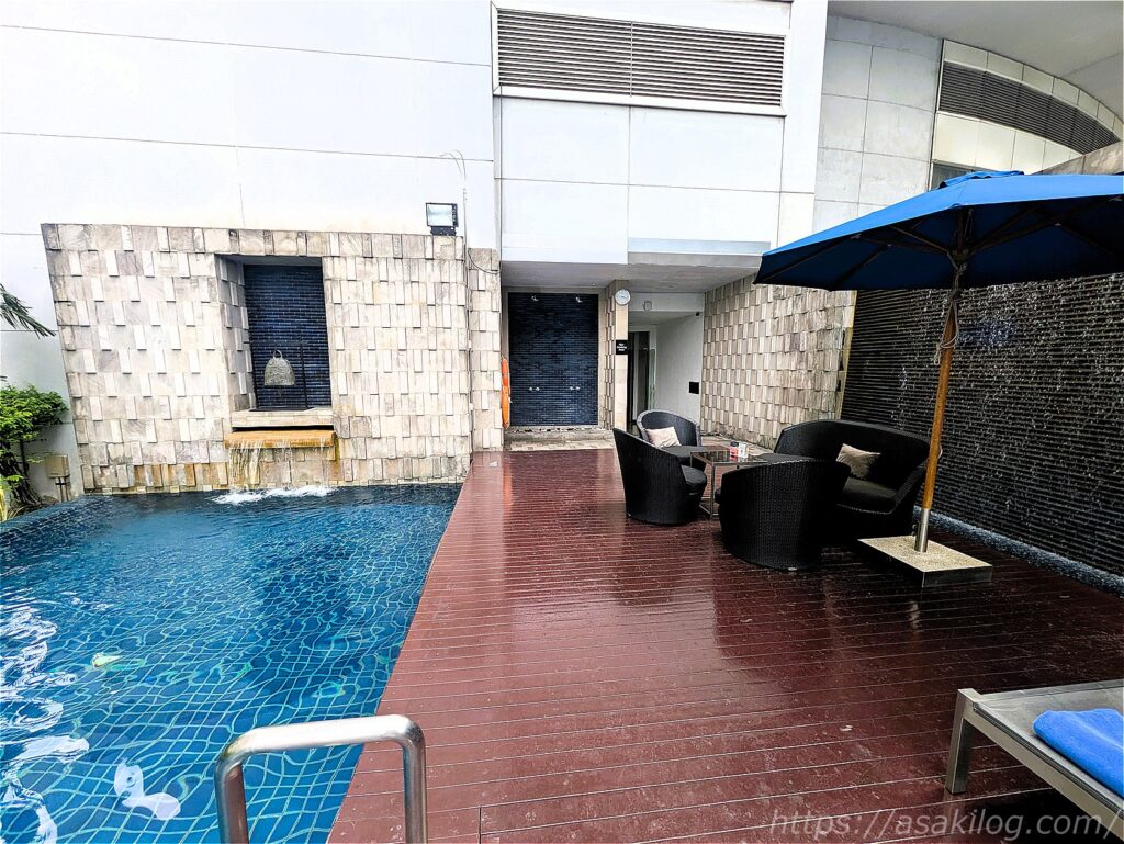 都会にあるホテルなので、それほど大きなプールではありませんが、ちょっと遊ぶには十分な大きさ。
