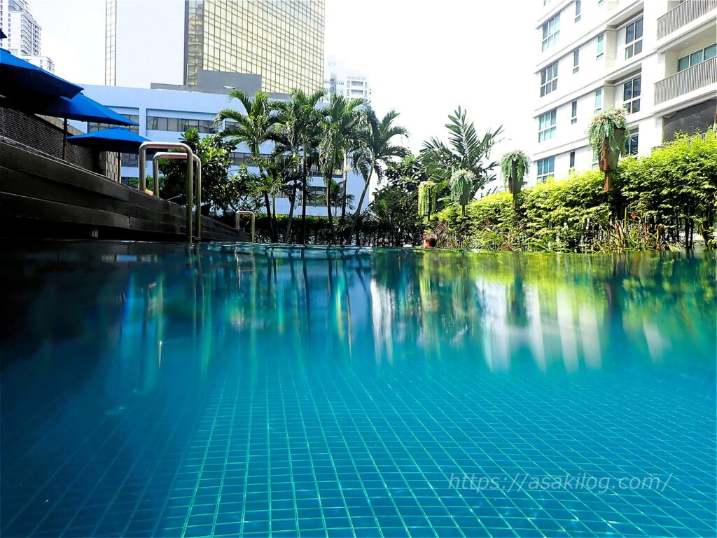 上記条件に合うホテルを探し、よさげなホテルをいくつかピックアップ→Googleマップに入れて比較したところ、割と大きめのプールがあってリゾート感覚で過ごせそうなホテルは駅から徒歩圏内ではあるけれど、できれば暑い中歩きたくない距離にありました(徒歩15分とか)。今回私としては、バンコク市内の移動にはタクシーではなく公共交通機関を利用したかったため、最寄駅からのアクセスの良さを優先しました。