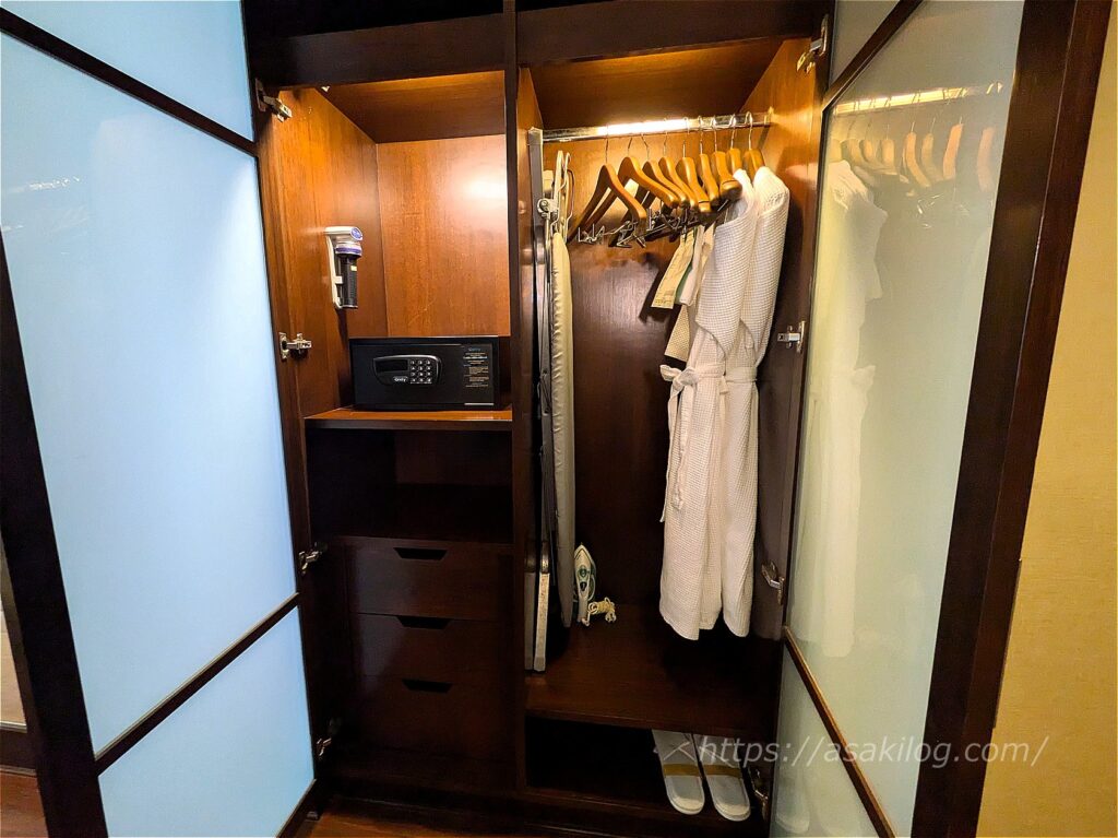 3枚目の写真はクローゼット。使い捨てスリッパがあったのは好印象でした(5つ星なら当たり前? 公式サイトに記載が無かったため、一応持参してました)。