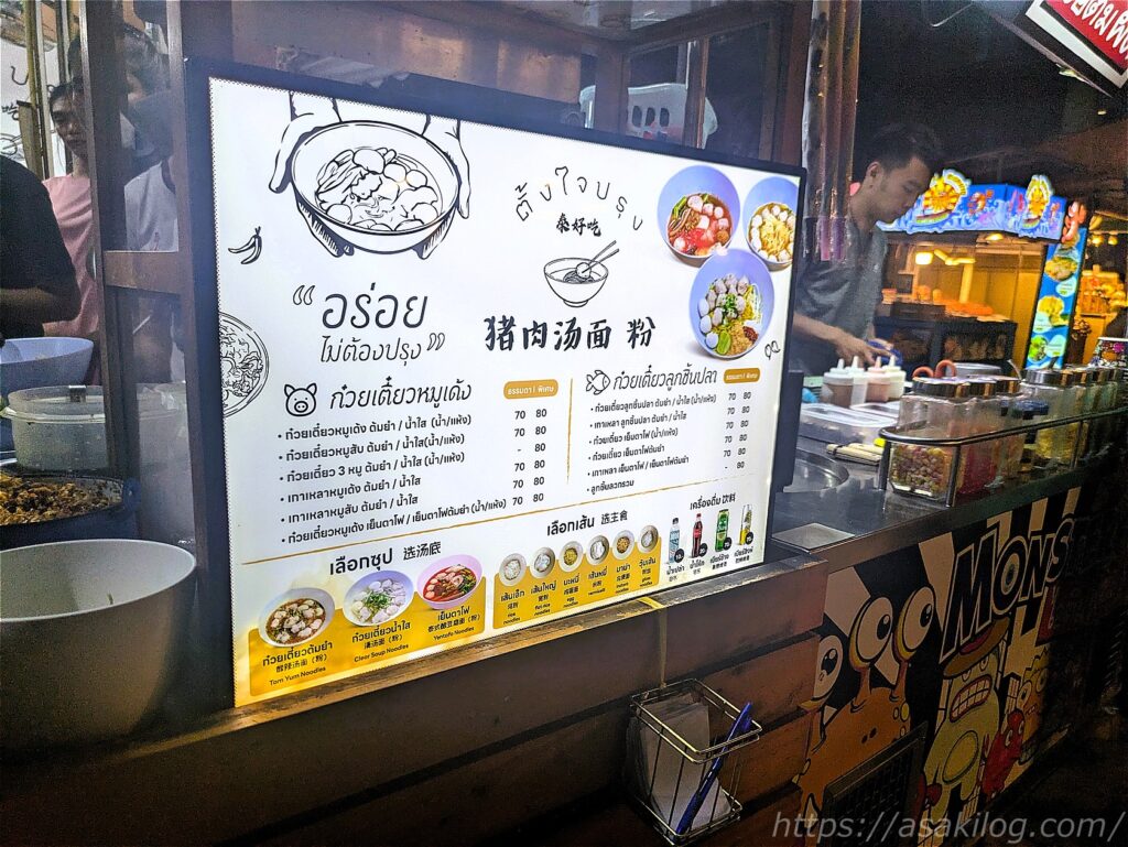 メニュー左下の「Tom Yum Noodles」「Clear Soup Noodles」の2つをオーダー。合計140THB(約588円)でした。