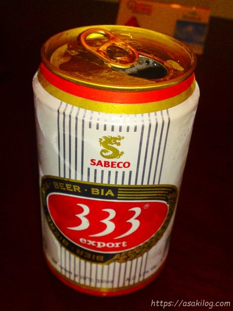 333ビール。ベトナム語で、333は、「バーバーバー」と読むらしい。
