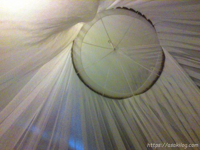 女2人で同じ天蓋なのは微妙ですが。まぁ長らい付き合いのある彼女なので、ヨシとしましょう(笑)ちなみに2つのシングルベッドをくっつけて、1つの天蓋となっていました。