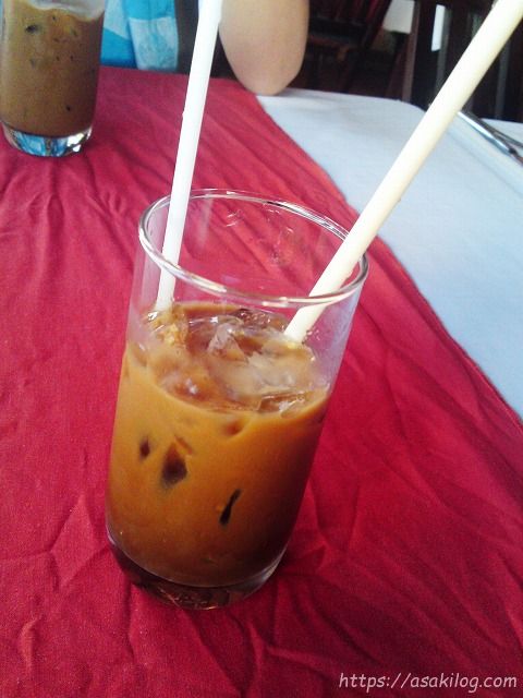 で、買い物の合間にお茶することに。「ミルク入りアイスコーヒー=カフェスアダー」です。