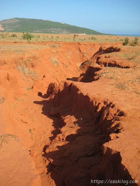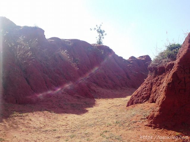 ん?単なる赤土?・・・地面にひび割れみたいなのがあるので近づいてみると・・・
