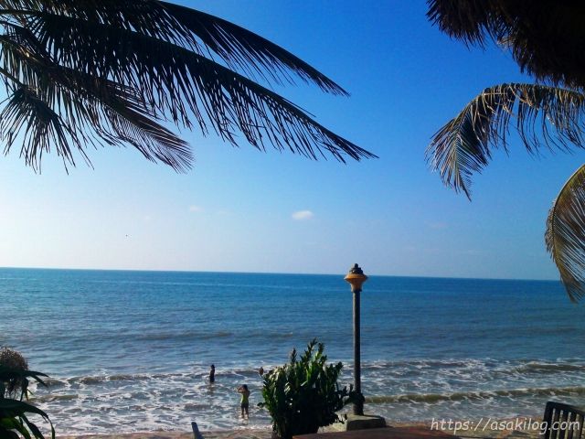 ベトナム2010:ムイネー滞在二日目 食後の散歩1 2010/8/12 2025/2/28 南の島/南国, 海外旅行 シェアする LINE! ※本サイトでは広告が含まれる場合があります。 ムイネー滞在二日目。この日は、午後からとあるツアーに出かける予定だった為、朝ごはんを食べた後は、まったり散歩することに。この景色を見ながら、朝ごはんを食べました。 砂浜が少ないビーチ。砂浜が年々減っているそうな(温暖化の影響?) 海水浴?している人がちらほら。波が荒いので、要注意。 泊まった宿の写真。ビーチまで徒歩15秒といった距離。近いっ! ホテルの部屋から見える椰子の木。