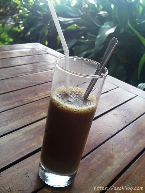(すっかり朝ごはんの写真を撮り忘れましたが)食後のミルク入りアイスコーヒー、よーくかきまぜます。ちなみに、ベトナム語では「ミルク入りアイスコーヒー=カフェスアダ」「ミルク入りホットコーヒー=カフェスア」です。