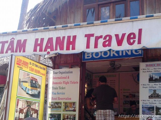 ホーチミン⇒ムイネーの移動 では、事前に日本から、オープンバスツアーを申し込んでいましたが、帰りは、ムイネーでツアーを申し込んだショップで、オープンバスツアーの予約をしました。(行きは6ドルでしたが、帰りは95,000VSNでした。・・・当時のレートだと、帰りの方が少し安かったかな?多分)