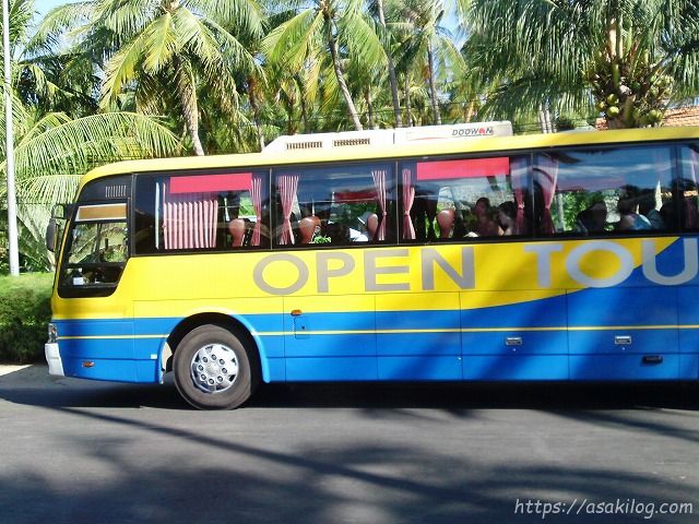 朝、ホテルをチェックアウトして、オープンバスが来るショップまで歩きました。