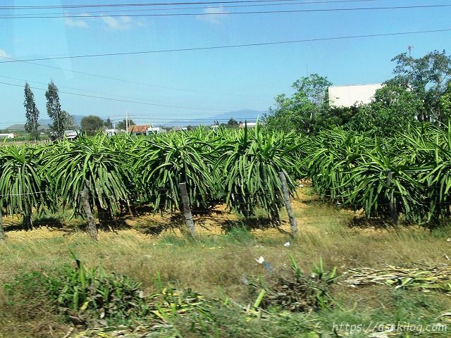 途中で、ドラゴンフルーツの畑が広がっていました。