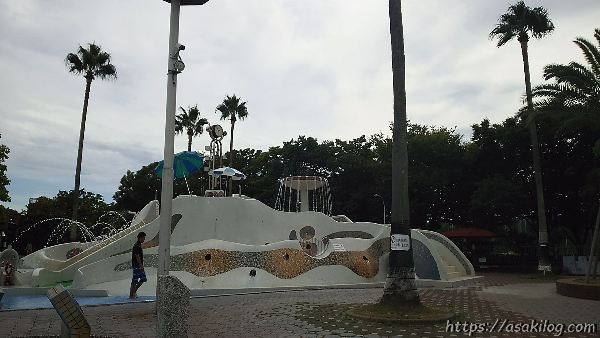 さて、ウォーターランドに入りました。ヤシの木が南国の雰囲気で最高!・・・とか言ってる場合ではありません。駐車場が満車だったから予想はしていたのですが、やっぱり混んでる~!!!閉園時間までもう3時間も残っていないのに、大盛況です。どれくらい混んでいたのか?以前撮影した写真と比較してみようと思います。