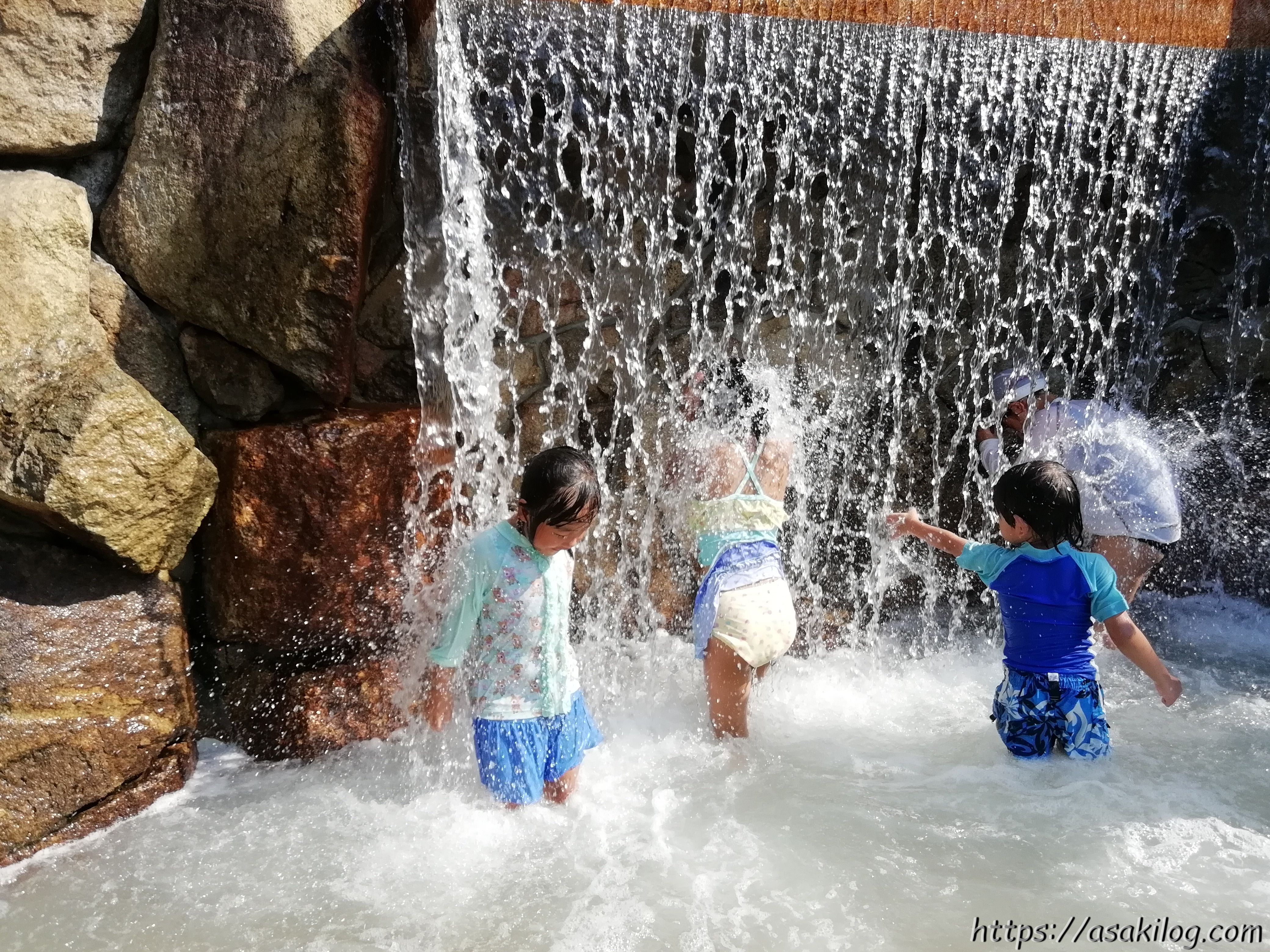 次に、ウォーターランド入口から奥まった場所にある、滝と岩組ゾーンへ。